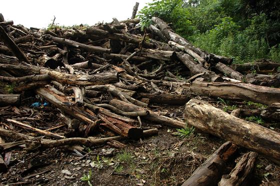 最初は10トントラックで10台分以上のものすごい山状態でとても一人では回収しきれない量だったので、昨年ヤフーオークションに原木情報として出品して20人くらいの人が薪集めに来た。タイミングが合えば現場で情報交換して薪ストーブユーザー同士の交流ができた。その中の何人かは今でも継続的な交流が続いている。