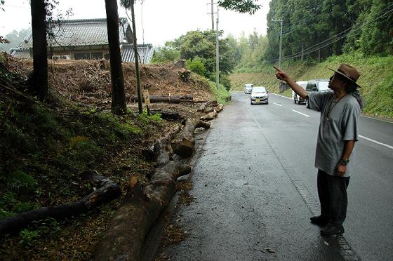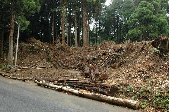 切り倒した木をそのまま山の斜面に放置することなく、きちんと枝払いして幹の部分だけを道路っぺりに運び出してあって、とても作業しやすい状況になっている。