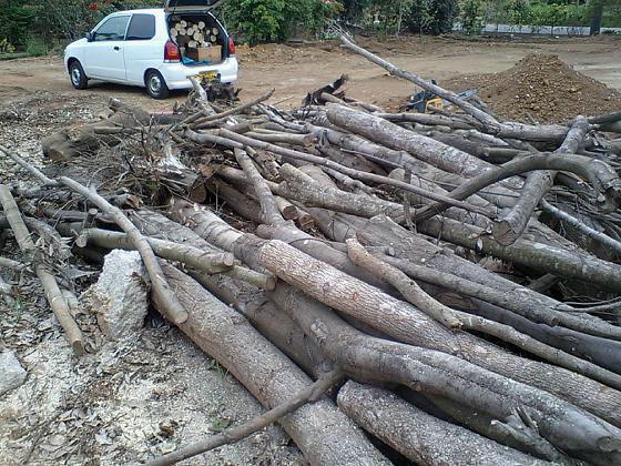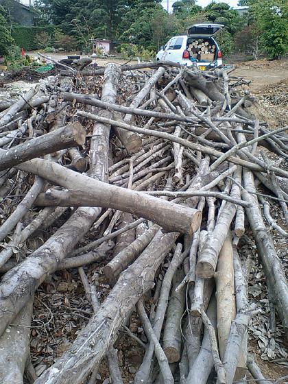 どこかの現場で切ってきたやつを降ろして、暇な時に少しずつ焼却処分しているような様子だったので「薪として使いたいからもらっていい?」と訊いたら快く了解してもらった。
