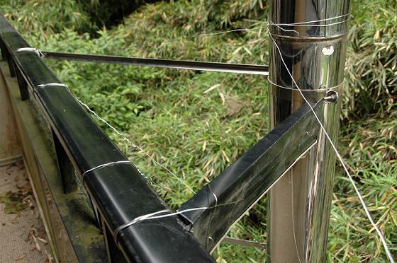 台風が近づいてきているということで、その対策のため元のように煙突上部に針金のステーを取り付けることにした。またステーだけだと左右と建物の外側方向へのぐらつきは抑えることができるが、建物の内側方向へのぐらつきを抑えることができないので、煙突固定用の余りのパーツと廃材を組み合わせてベランダの手すりに固定した。これにより、がっちりと安定して手で力を入れて押しても引いても動かなくなって安心感が出てきた。当初の106mmと150mmの二重断熱煙突の仕様の時よりもさらにしっかり固定できた。なんだか当分まだこれでいけそうなくらいだ。