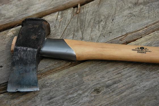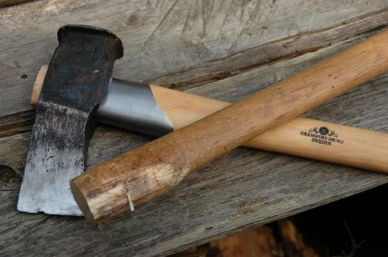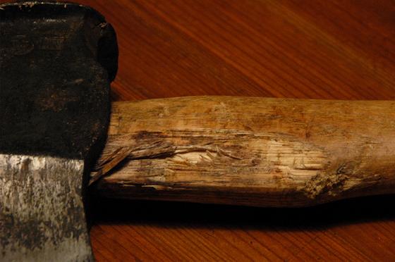 20トン近く薪割りしているうちに斧の柄のカバー部分が外れてしまい、柄にダメージが進んできた。すぐに折れるわけではないが、このような状態で作業を続けるのも不安が残るし、おっかなびっくりの作業だと力も入らなくなるし、危険が伴う。