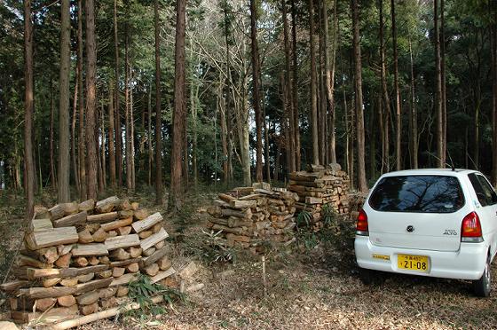1年ほど前に成田の里山の会の人の紹介で、富里の山でヒノキを植林するために杉を伐採するという話しがあったので行ってきた。ほとんどは杉だったので、薪ストーブでメインに使うのは今ひとつだが、焚き付けや、キャンプの薪などには十分使えるし、こういう話を断ってしまうと次がこなくなるので、無理しない範囲で集めておいた。幸いなことに自宅へ持ち帰らなくてもそこの山に置いておいて良いという許可をもらったので、その山に生えていた竹を敷いて地面から浮かして薪割りして積んでおいた。