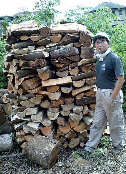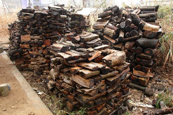 一山でだいたい1トン一ヶ月分くらいとなる。これが6山で1シーズン分くらいここに積んである。