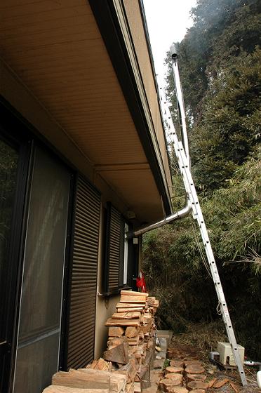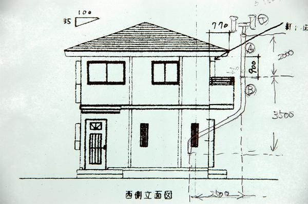 壁抜きしてそれほど距離がなく立ち上げることができれば水平引きでも問題ないのだが、我が家の場合は煙突を抜いた上にはベランダがあって、2.5メートルになってしまう。さすがにその距離を水平引きすると、流速が落ちたり、引きが弱くなったり、煤が積もりやすくなってしまうことはやる前から想像がついた。そこで、水平引きにはしないで傾斜角度をつけて外に出すやり方を採用した。