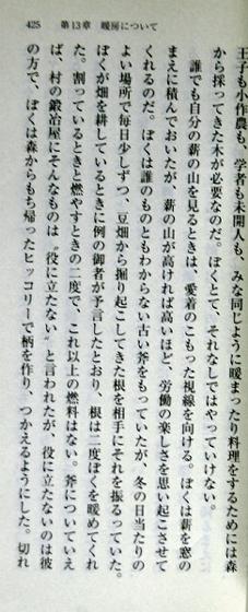 作者は二年間の森での生活を終えて街に戻ったようだが、どうしてずっと森の生活を続けなかったのかを、この本を読んだ誰かと議論してみたい。