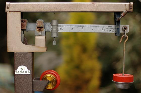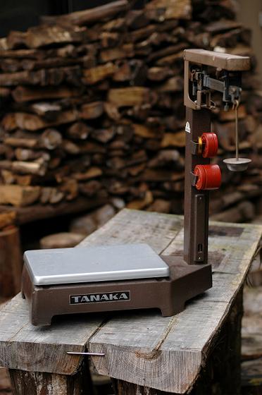 それでもまあ、たくさん載せると目盛りが見えなくなる体重計よりは全然良いのだが、先日100キロまで計れる台式の天秤秤をゲットした。これは錘を組み合わせて計測する重さを設定すると、台の上に載せたものの重さとつりあって天秤が動くという優れものだ。2.5kgから100kgまで計測できる設計になっているので、これだとMEGA薪も含めてガンガン載せても、容易に計測できる。