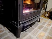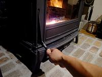 誰でも悩むことなく、間違えなく直感的に、しかも確実な操作ができるユニバーサルデザインだ。さらに、ヒンジや鋳物の精度の良さ、質感の良さが出ていて、閉める時にカチっとした安心感を感じることができるのだ。薪の投入などで普段から触れる機会の多いところなので、こういう感触、安心感、節度感というのはとても重要だ。燃焼性能も抜群だけど、こういうところの作り込みまで配慮されている歴史と伝統の積み重ねは他では得られないものだ。