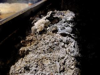 炉床に灰がこんもりと積もった様子