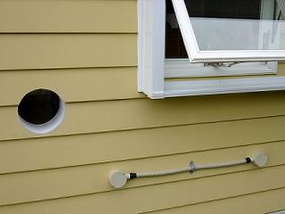海辺の別荘の薪ストーブ工事の続き。いよいよ煙突工事に突入だ。