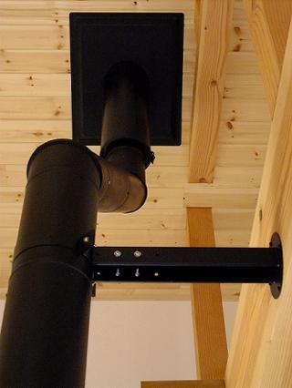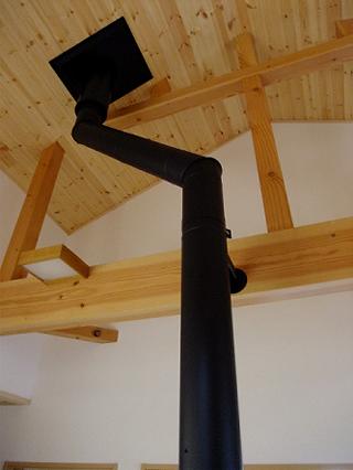 煙突の基本は真っ直ぐで曲がりがなく屋根の上まで一直線で貫くものだ。この場合は排気抵抗が少なくてスムーズな燃焼となる。