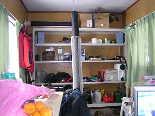 薪の動線などが完璧に近いプランだったので不思議に思っていたら、既にこの建物を建築する時点から仮説のプレハブ内で薄い鉄板製の薪ストーブを使ってきていたので、ある程度の薪ストーブのノウハウをお持ちだった。