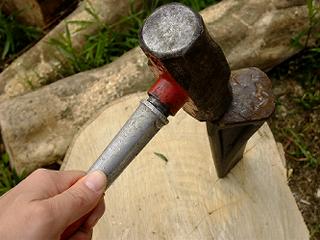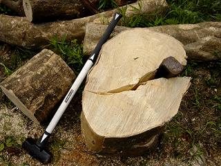 ヒビが切り口にあったらそこに片手ハンマーでクサビを打ち込む