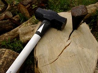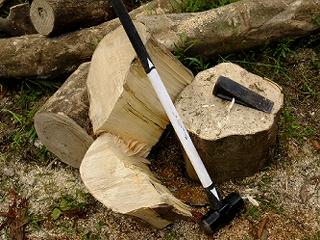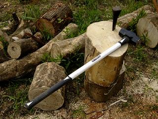 斧だと全然割れないような手ごわい原木でもクサビと巨大ハンマーのコンビで立ち向かえば、比較的ラクに割ることができて体力を消耗しないで済む。私は初めてクサビを買った時に「何でもっと早く買わなかったのだろう」と後悔した。