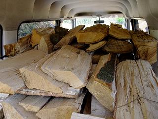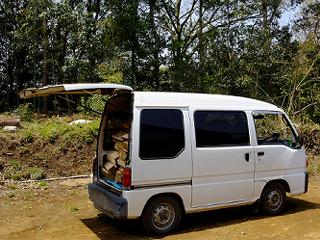 薪運びの車といえば軽トラックが定番だけど、私は軽の箱バンを利用している。差し枠を立てなくても、この写真のようにけっこうたくさん積めて便利なのだ。
