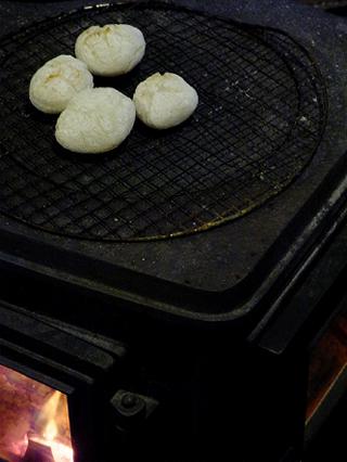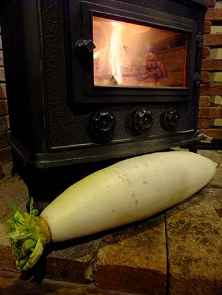 大根本来の味わいを生かすために、とりあえず大根おろしだ。お餅を薪ストーブの天板で焼いて、一緒にいただいた。