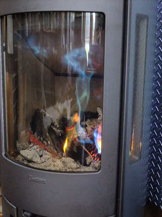 薪ストーブも樹種によって高温で燃焼させると青白い炎が出るけれども、それなりの条件が必要になってくる。誰でも確実に青い炎を楽しめるグッズを紹介しよう。メトスから発売されているカラーコーンS30991だ。クリスマスや特別な日に、こういう炎をたまに楽しんでみるのも良いと思う。