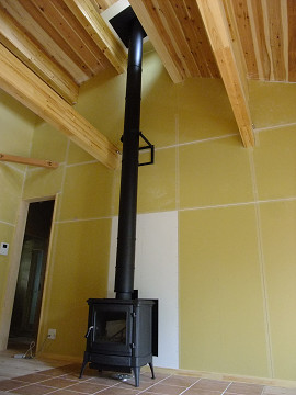 内部構造も普通の薪ストーブとは全然違う。鋳物の外側のパネルの内側に鉄板を溶接した箱が入っている二重構造になっているのだ。その鉄板が溶接されて完全な密閉構造で気密になっているのがウリのようだ。この鉄板の箱の内側に耐火煉瓦ではなく炉内用の鋳物をはめる構造だ。炉内用の鋳物の上にバーミキュライト(?)のバッフル板を乗せるのだが、知恵の輪、パズルのようにコツがあってかなり難しかった。