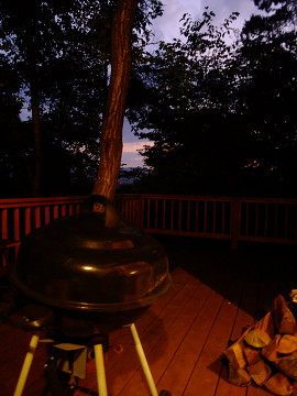 長野の別荘で、イギリスから持ち帰った本格的な大型のバーキューコンロがあったので、この方法でやったけど、薪ストーブの炉内の熾き火でも、これと全く同じことができる。薪ストーブを使っている人はぜひやってみよう。薪ストーブと五徳、金網があれば、冬でも室内で快適なバーベキューが楽しめる。熾き火になった時には色々と料理に活用できるのだ。
