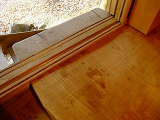 敢えて切らずに窓枠の外に出して、屋外デッキでビールを飲む時の台として使う