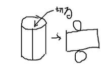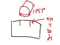 ■6■ 煙突の下部に数センチ残る部分の弦になるように切り込みを入れる
