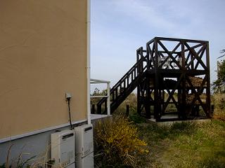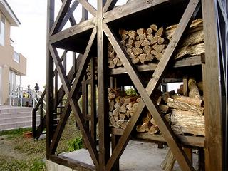 これまで色々な薪棚を見てきたけど、この薪棚は最高だ。もはや薪棚や薪小屋と呼ぶだけでは、ふさわしくはないだろう。上部が展望台になっていて、太平洋を見渡すことができるのだ。