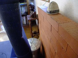 炉壁と既存の壁の間に空気層を確保してあるのは正解だったけど、間柱と炉壁を振れ防止のために金具で固定するという安全対策を取っていなかったためにこうなった。