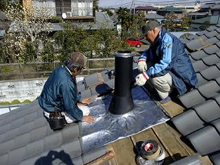 鉛シートをさらにかぶせて、瓦の雨仕舞い
