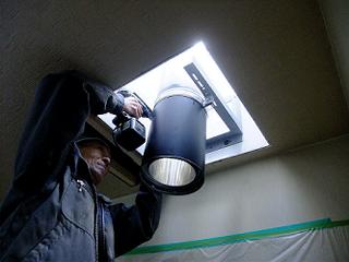 屋根裏に煙突を通す
