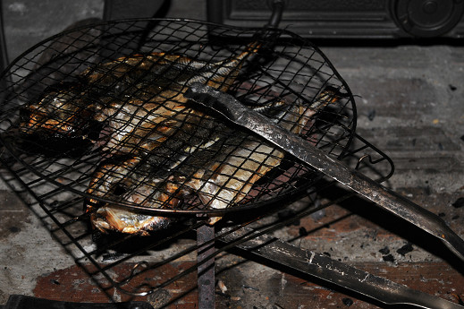 ひっくり返す時には金網をもう一枚使って魚の上にも乗せて金網でサンドイッチ状にして火バサミでつかんでまとめてひっくり返すと皮がはがれることなく、スムーズだ。炉内で魚を焼く場合には、煙が室内に出てくることもない。みんな煙突から抜けていく。終了後に、掃除も必要ない。炉内に落ちた油や汚れなども、そのまま薪と一緒に燃えてしまうのだ。手もかからず、とても美味しくできるので、ぜひとも挑戦したい薪ストーブ料理の一つだ。