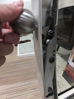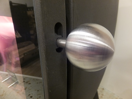 9月に発売された最新モデルのドブレのヴィンテージはさらに一歩進んだ開閉方式だ。車のドアのように閉めてもきちんとショックを吸収しつつ確実に扉がロックしてくれるようになっている。やさしく手で押さえるように閉めてもいいけれども、動画のように投げるように扉を押してやっても大丈夫なのだ。これは回転式のレバー方式とは比較にならない便利さだ。薪を投入した後に扉が上手くしまらなくてあれこれ試行錯誤する苦労から開放される画期的な仕組みだ。これまでこのように車のドアのように扱える薪ストーブがあっただろうか?