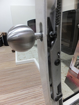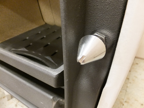 よくある回転式のレバーハンドルだと、引っかかって閉まらなかったり、安っぽい感触だったりして、薪の投入時などに興ざめしてしまうことが多い。薪ストーブの展示品の実機を見に行く時は外見に惑わされずに、こういう部分の質感などカタログの写真では判らない部分を重点的にチェックするべきだと思う。本当の「高級」というものがどういうことなのか価値観、センスを磨きたい。