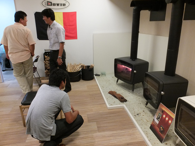 目的は、ドブレの最新機種『ヴィンテージ』の炎を見るためだ。これは見た目はレトロで懐かしい形だけど、ドブレの技術の粋を集めた超高性能な薪ストーブなのだ。この9月に発売開始のバリバリの最新モデルで、実機に触れる機会にようやく恵まれた。詳細については、後日詳しくレポートする。