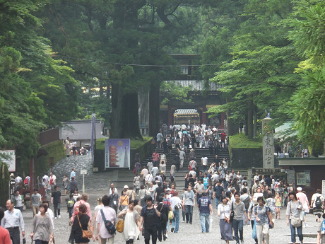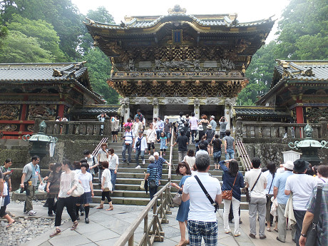 日本の伝統的な建物、神社仏閣に興味を示しているので、世界遺産にもなっている日光の東照宮へ連れて行った。人の多さにビビってテンション下がっていたけど、せっかく来たのだから、一通り見てもらった。