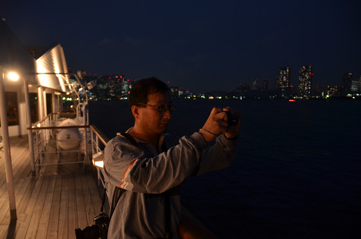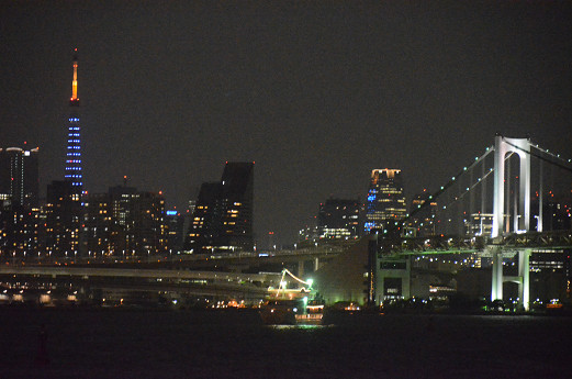 このナイトクルーズは2時間半の所要時間で、東京湾をぐるりと一周するものだ。予約内容次第で船の中のレストランでディナーでコース料理を食べることもできるけど、今回は夜景の撮影重視で「乗船のみ」のプランを選択した。