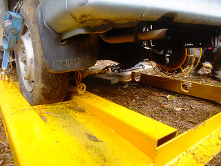 駆動輪の片側を固定、片側にリールを取り付けてワイヤーを巻き取る