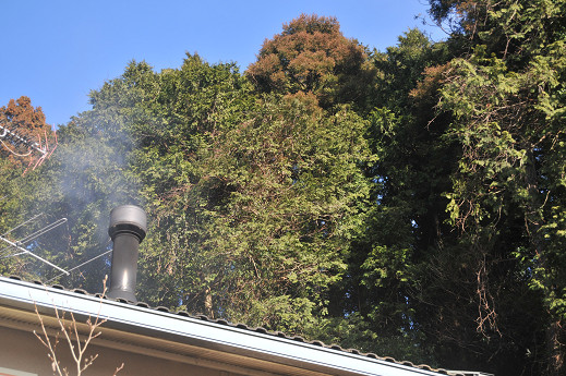 初期のこの段階だけは、炉内の温度が十分に上がってないので煙突からの煙が目立つ。
