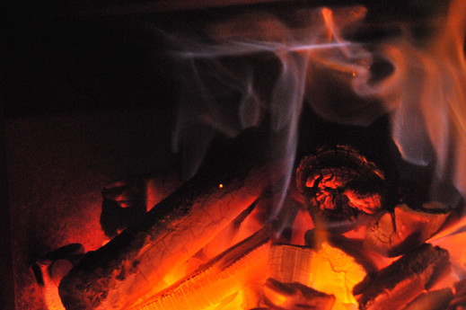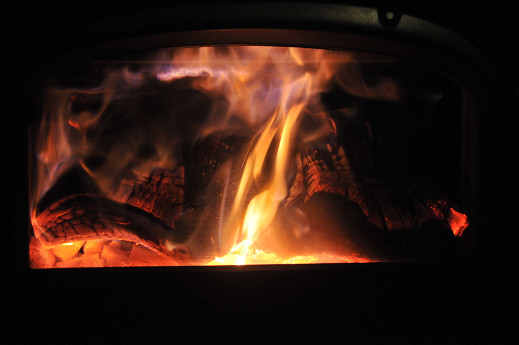 ドブレ700SLを完璧な状態で焚くとこうなる。炉内には熾き火たっぷり、十分に乾燥した薪を高温でガンガン焚く。そして空気調整して、ダンパーを調整すると、このように美しい青白い炎、オーロラのような炎となる。