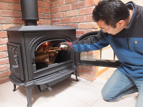 最初の見積もりの時点ではアメリカンな薪ストーブを希望されていたお客様だけど、リフォーム工事が進んでいくうちに色々と検討されて、最終的にヨーロピアンな薪ストーブに落ち着いた。お客様の希望を優先して、こちらからは変な誘導はしないけど、自分好みの薪ストーブを選択していただいて、うれしかった。