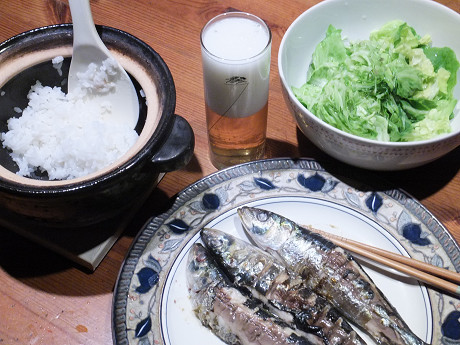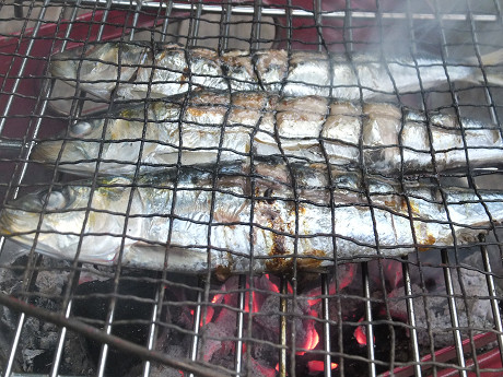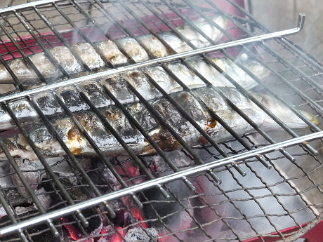 薪ストーブの炉内でも、屋外でのBBQコンロや七輪でも共通しているけど、魚を焼く時には金網で両面をはさんで、二つのトングを使ってはさんだ金網ごとひっくり返すと、皮がはがれることなく、全体の形にダメージを与えずに美しく焼ける。