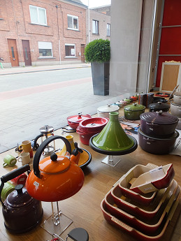 とりあえず今日紹介するのは、その中のごくごく一部だけど、ショーウィンドー越しの展示がとても秀逸だったところを見て欲しい。キッチンウェアとビンテージのオリーブグリーンのポップな色合いが素敵だ。通りを歩いていて、これを見かけたら立ち止まらずにはいられないだろう。