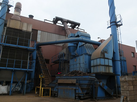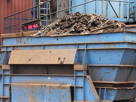 このデジタルの計量はかりで計測して一度に約20トンづつ(薪ストーブ100台分くらいの素材量)炉に入れていく