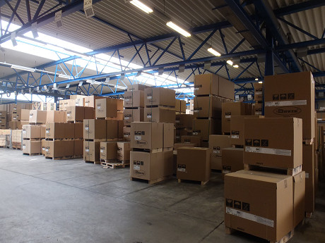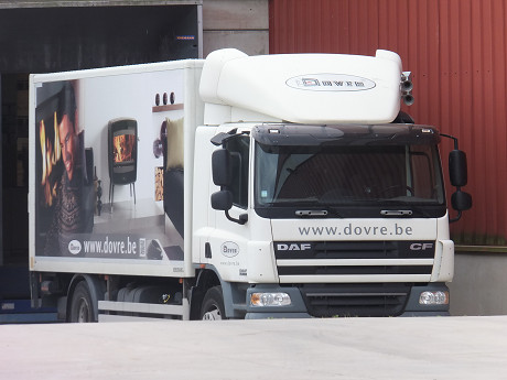 出荷を待つ暖炉(私と群馬の薪ストーブ屋さん) 出荷を待つ薪ストーブ 製品搬出口(ここから全世界へ向けて出荷される) カッコ良いドブレトラック
