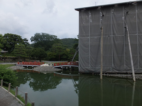 京都に来て、時間が取れたので平等院に行ってきた。10円玉に描かれている建物だけど、残念ながら来年の3月までは改装工事中のため足場がかかっていて建物を見ることはできなかった。 建物の劣化が激しいのでリフォーム作業の真っ最中だった。来年、完成後にまた見に来たいところだ。 庭園には造園屋さんが入っていて、伐採作業をしていた。幸運にも倒す瞬間を見ることができた。倒す方向をコントロールするためにロープで引っ張っていた。 さすがに古都の伝統ある場所に入っている造園業者さんで、姿もばっちり決まっていた。