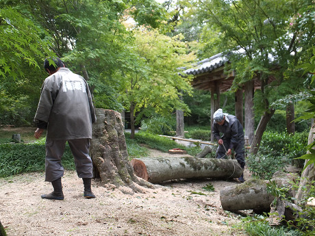 yamadagagaさま: こんな歴史と伝統と格式ある現場での伐採作業、できたら一生記憶に残りそうです。