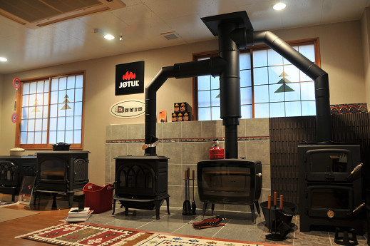 奥の間にはヨツールF400、ビンテージ50、ピキャンオーブンが煙突に繋がって燃焼可能の状況