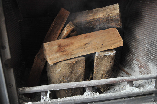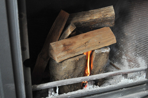 そして焚付けの薪を、熾き火の上に置いた後に、この空気切り替えレバーをAとBの中間辺りにして扉を閉めてやると、下からと上からの空気が適度に混ざって、良い感じで薪に火が回ってくれる。とても簡単に再起動できるので、やったことのない人は是非試してみて欲しい。