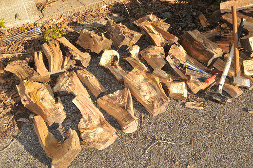 自分は最近は、すっかり怠け者になって、こういう股になった部分やなんかは、薪割り機で割るか、そのまま焚き火用にしてしまっています。