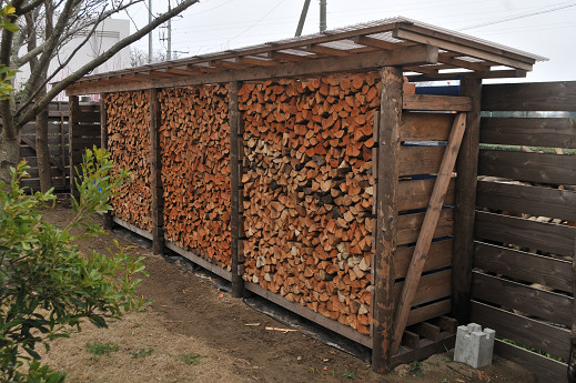 作成した薪は作業スペースの裏側の薪棚に収納