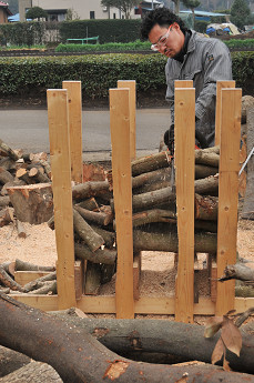 角材8本が立っているのは「ゴン太切り」用の道具です。