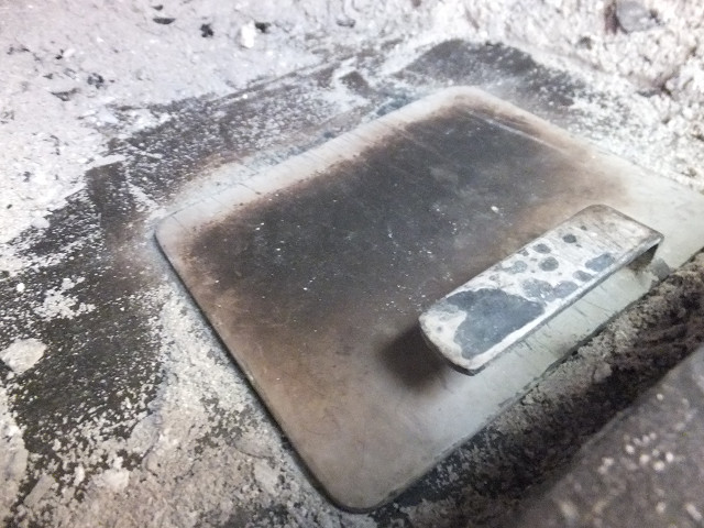 そして炉底の変形部分については、炉底を叩いて直すよりも、二方向についている蓋の仕切り板に、さらにもう一枚の仕切り板を溶接で付加すれば、炉底の変化部分の隙間の空気をシャットアウトできるようになるので、それで元通りになるだろうから、それで試してもらうことにした。